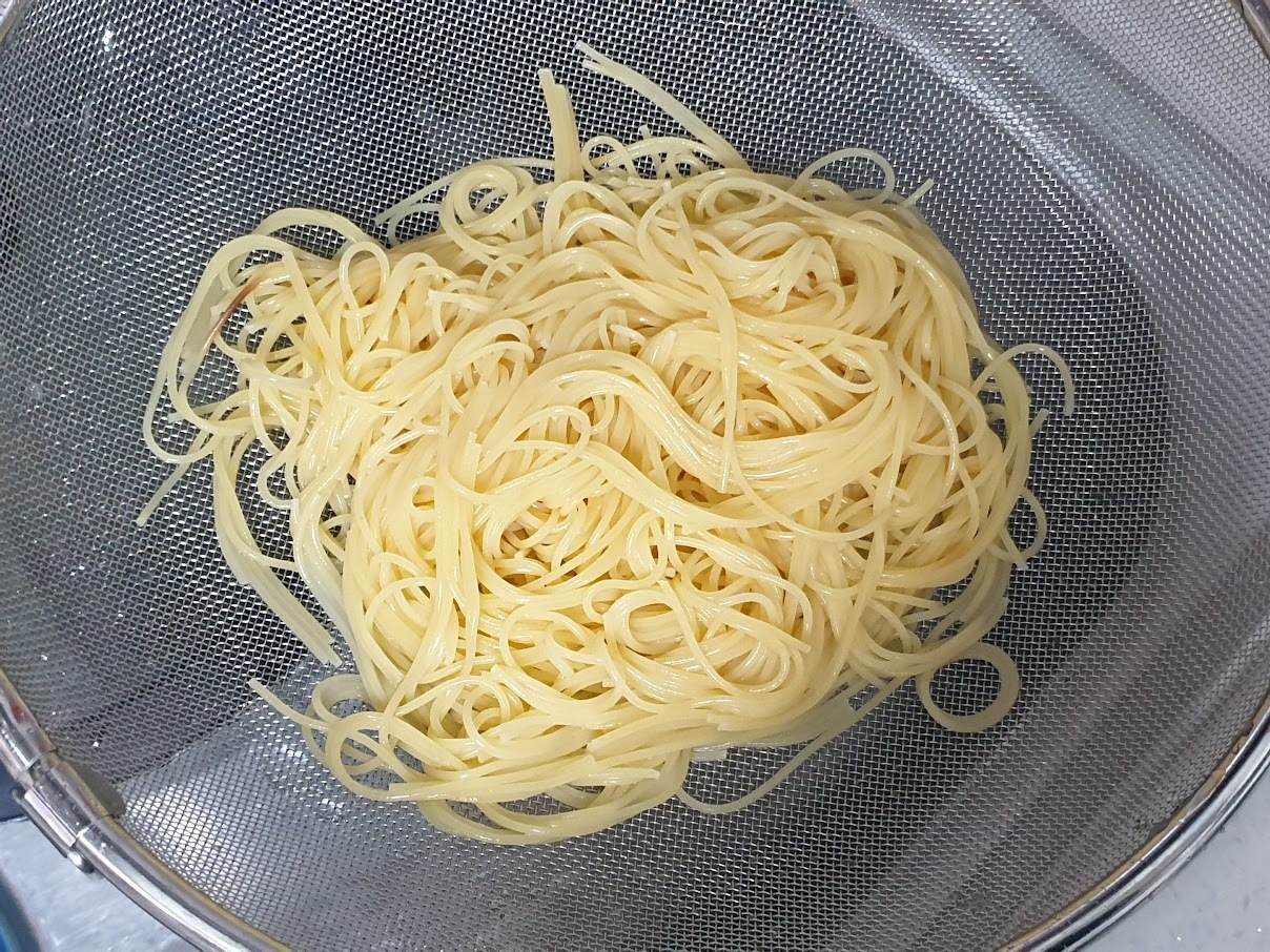 저는 이번에 얇아서 냉파스타에 잘 어울리는 면인 스파게티니를 사용했어요.