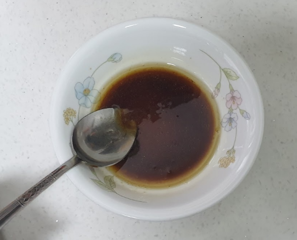 들기름 2큰술, 진간장 2큰술, 올리고당 1.5큰술, 식초 1큰술을 섞었습니다.