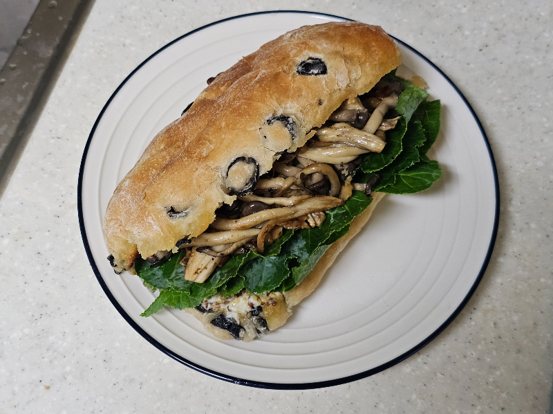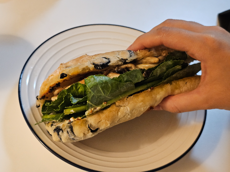 올리브 치아바타, 케일, 느타리 버섯을 사용했어요.